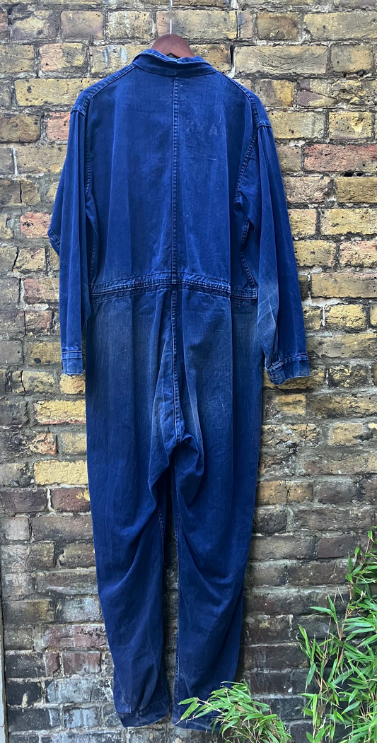 Vintage Royal Navy Overalls Faded Dark Blue Stenciled Denim