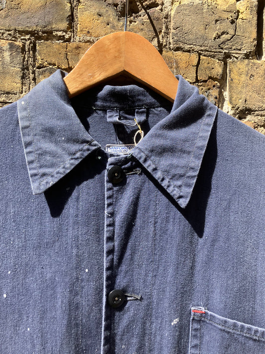 Vintage Paint Splashed English Overalls Blue Sanforized