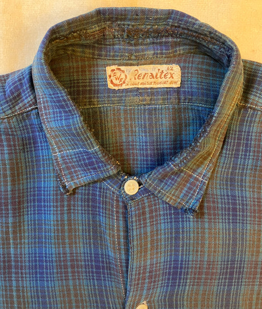 Vintage Blue check French Darned Work Shirt.