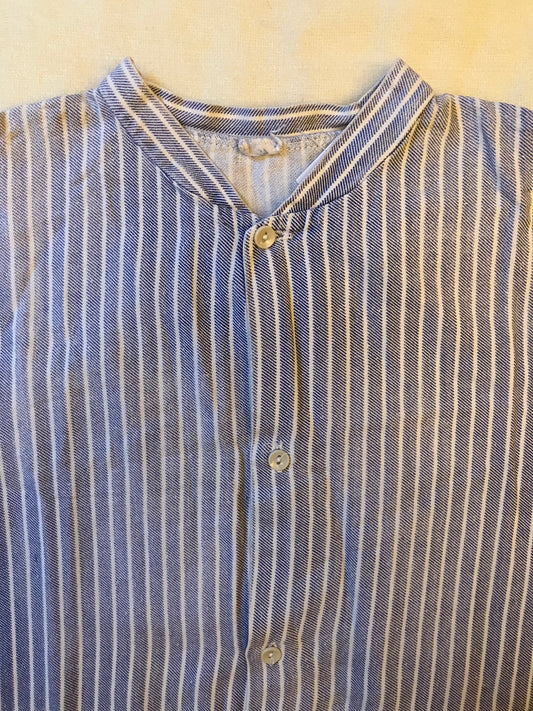 Vintage European Faded Blue & White Stripe Collarless Work Shirt