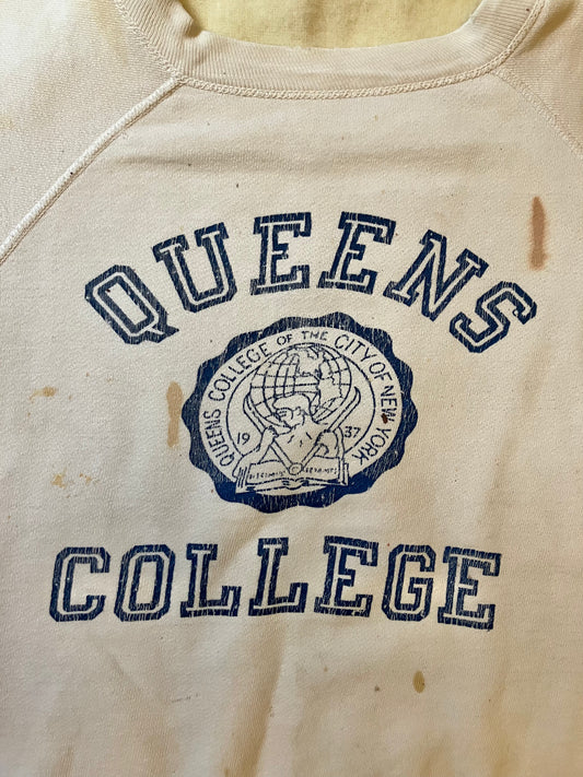 Vintage 1950s American White Queens College Raglin Sleeve Sweatshirt